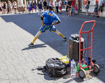While we were in Canterbury this Street Performer, his name was Teflon, set up to start his break dance routine. He was extremely good and very entertaining. I was standing at the front of the crowd near his equipment and I am very pleased to report that my Son's video of Teflon and I dancing face to face did NOT come out.
